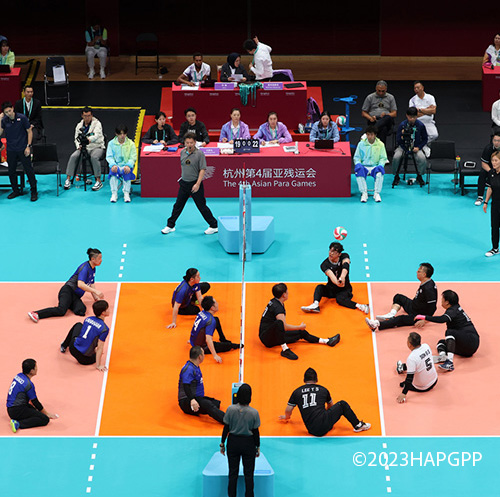 選手は2つのクラスに分けられ、コート上の6人のうち障がいの軽いクラスの選手は1人だけで、5人は障がいの重いクラスの選手で構成します。